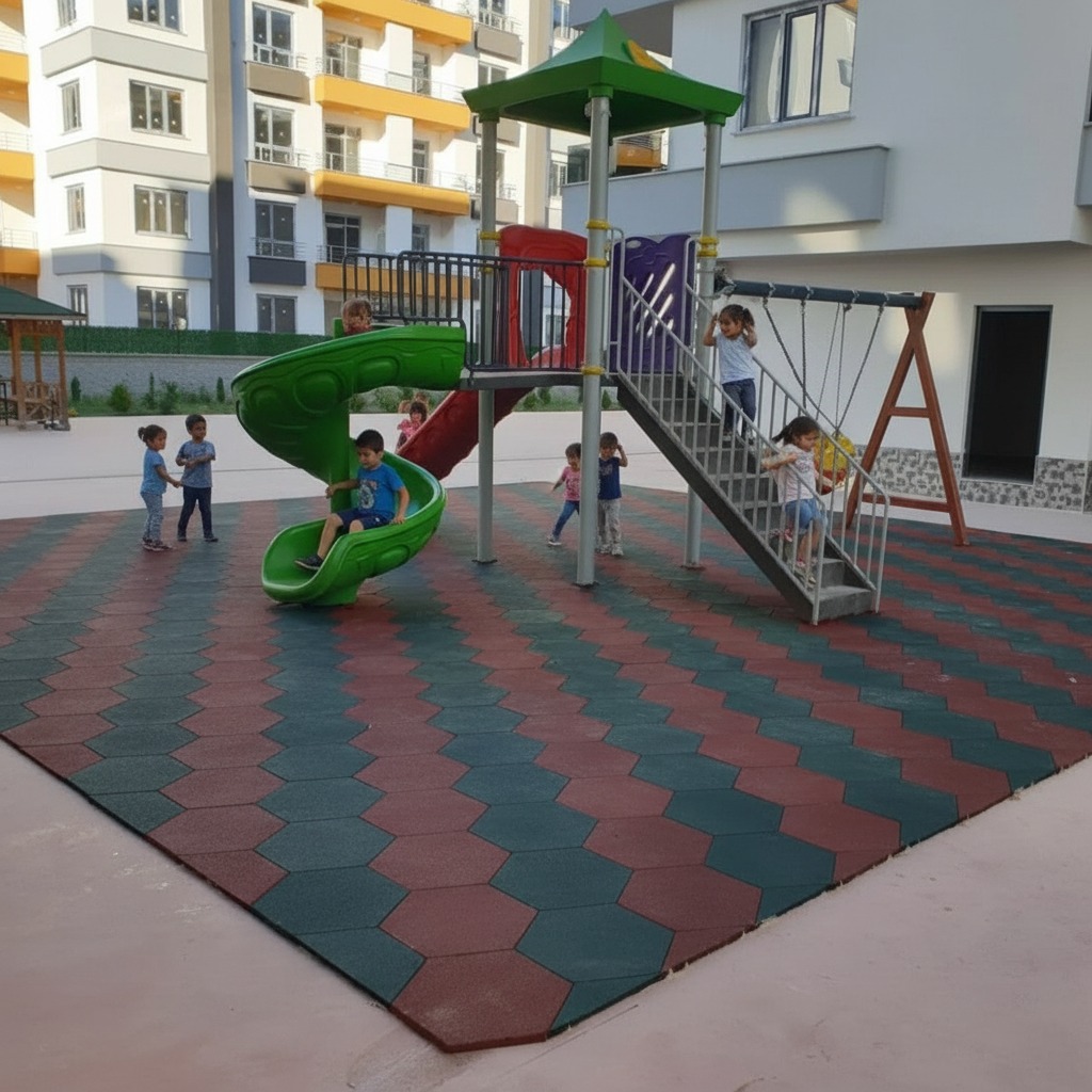 Şok emici ve esnek yapısı sayesinde darbe etkisini minimize eden altıgen kauçuk zeminler, düşme ve çarpma sonucu oluşabilecek yaralanma risklerini önemli ölçüde azaltır. Aşınma direnci yüksek yüzeyi, renk solmasına karşı desteklenmiş olup uzun süreli kullanımda dahi formunu ve görünümünü korur.